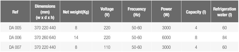 • Automatic distillers of continuous production and with water flow control.