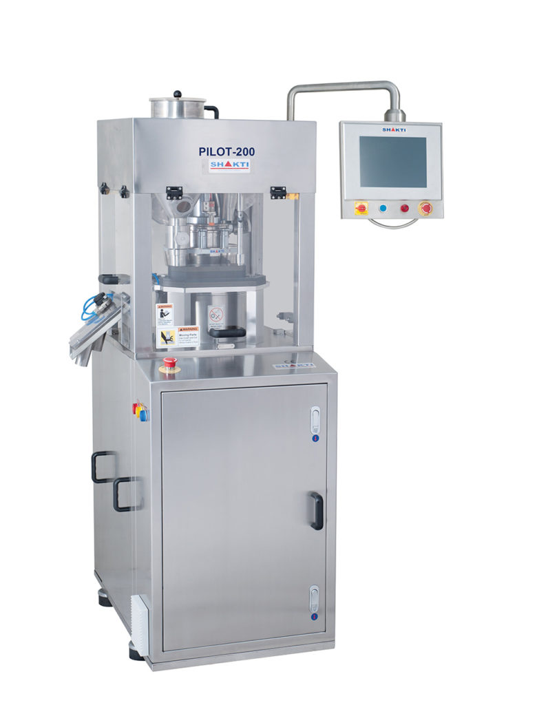 PILOT 200 is a High Tech Rotary Tablet Press designed for R & D and small batch production. This Single sided R & D Tablet Press fully conforms to GMP and the safety requirements.